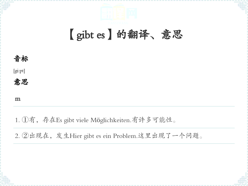 ①有,存在Es gibt viele Möglichkeiten.有许多可能性。