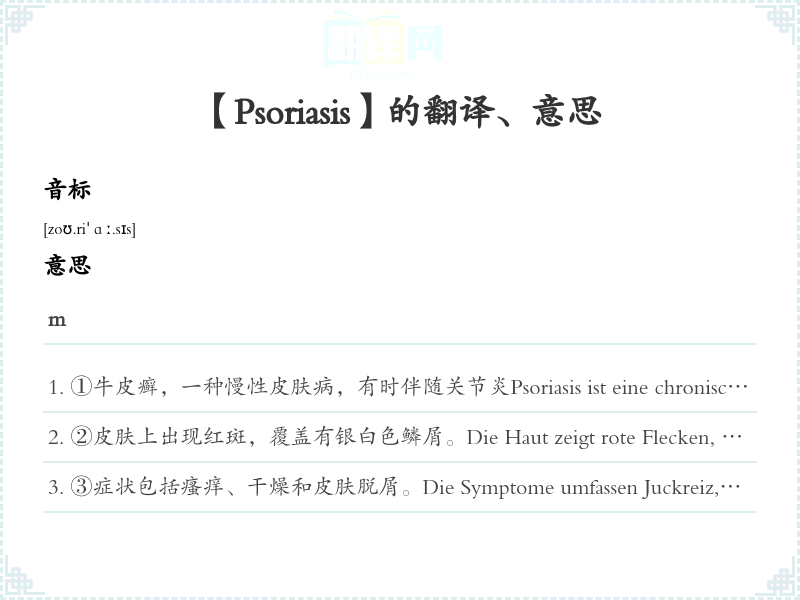 ③症状包括瘙痒、干燥和皮肤脱屑。Die Symptome umfassen Juckreiz, Trockenheit und Hautschuppung。