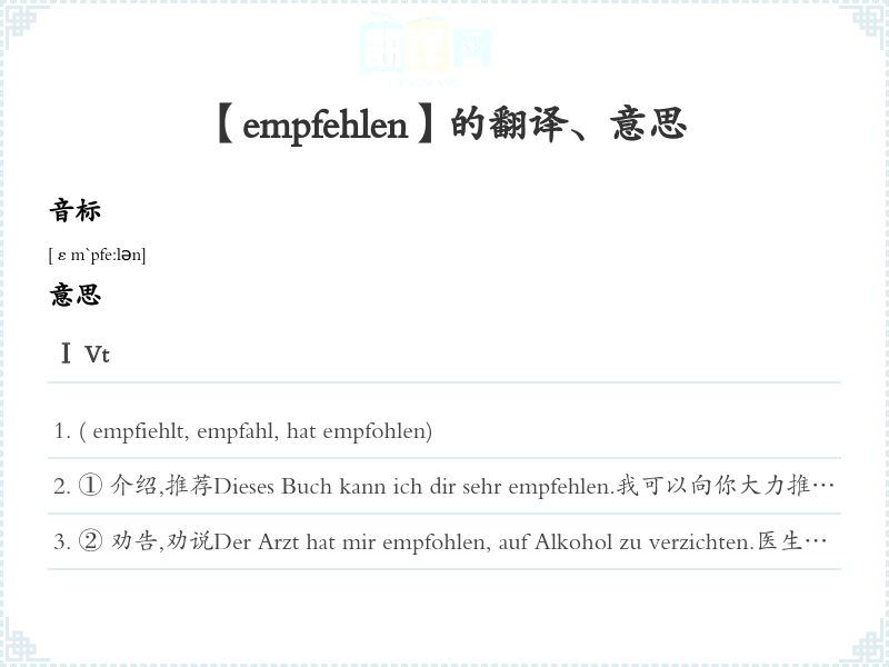 【empfehlen】是什么意思、字义解释