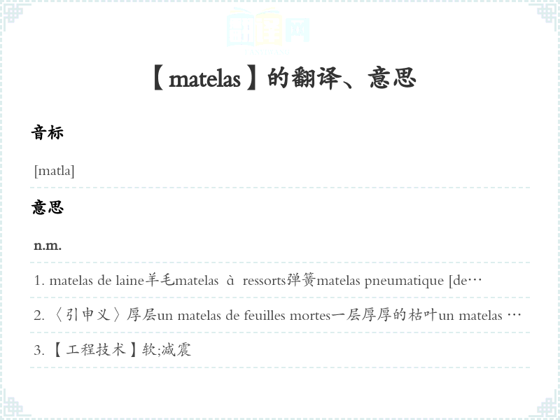 【matelas】是什么意思、字义解释