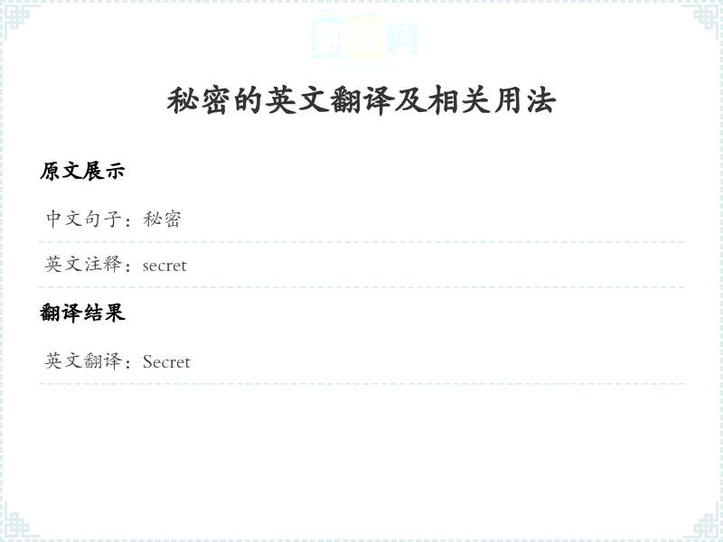 秘密的英文翻译及相关用法