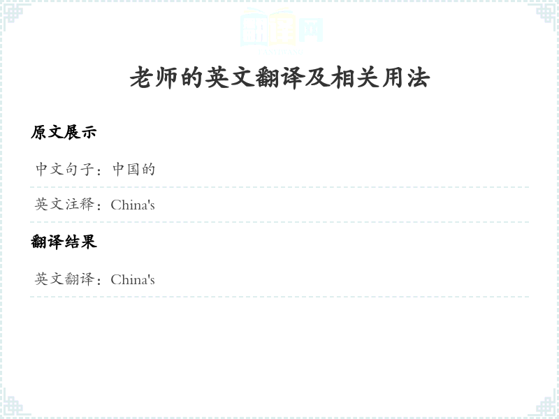 通过本篇文章的学习,希望你能够对"中国的"这个词的翻译及相关用法有一个全面的理解,并在实际应用中灵活运用。