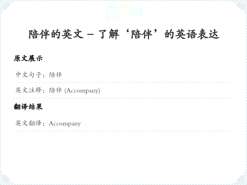 通过本篇文章的学习,希望你能够对"陪伴"这个词的翻译及相关用法有一个全面的理解,并在实际应用中灵活运用。