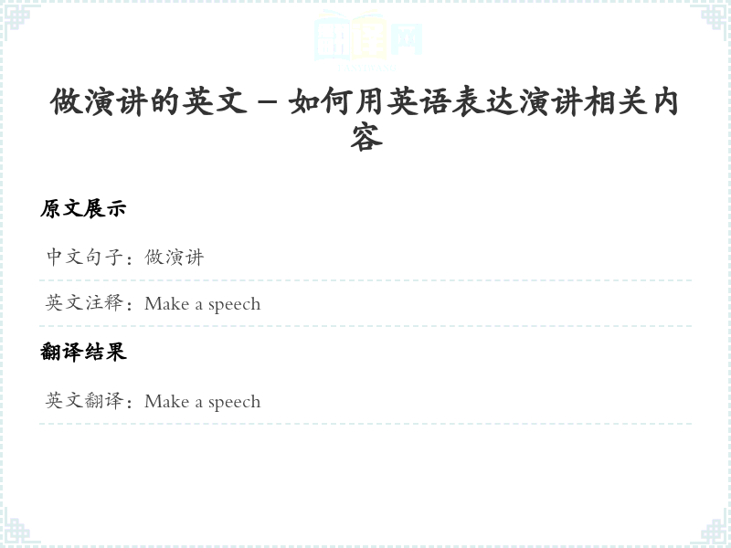 通过本篇文章的学习,希望你能够对"做演讲"这个词的翻译及相关用法有一个全面的理解,并在实际应用中灵活运用。