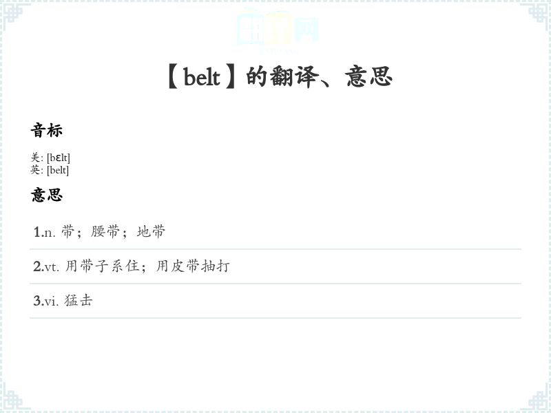 - 音标记忆法:/belt/。可以通过反复朗读和拼写来记忆。