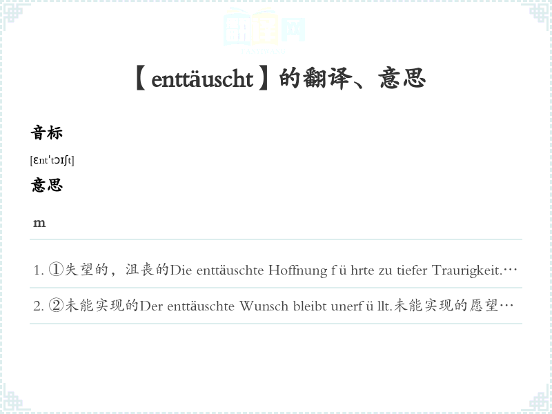 【enttäuscht】是什么意思、字义解释