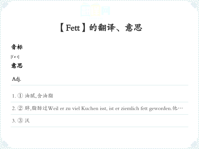 【Fett】是什么意思、字义解释