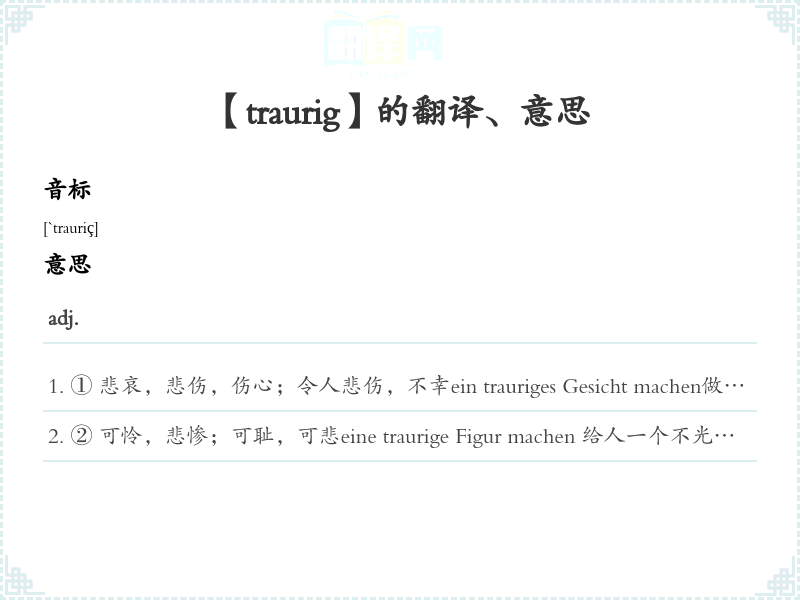 【traurig】是什么意思、字义解释