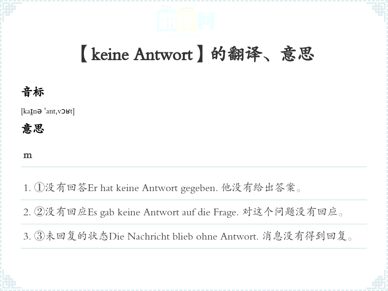 ①没有回答Er hat keine Antwort gegeben. 他没有给出答案。