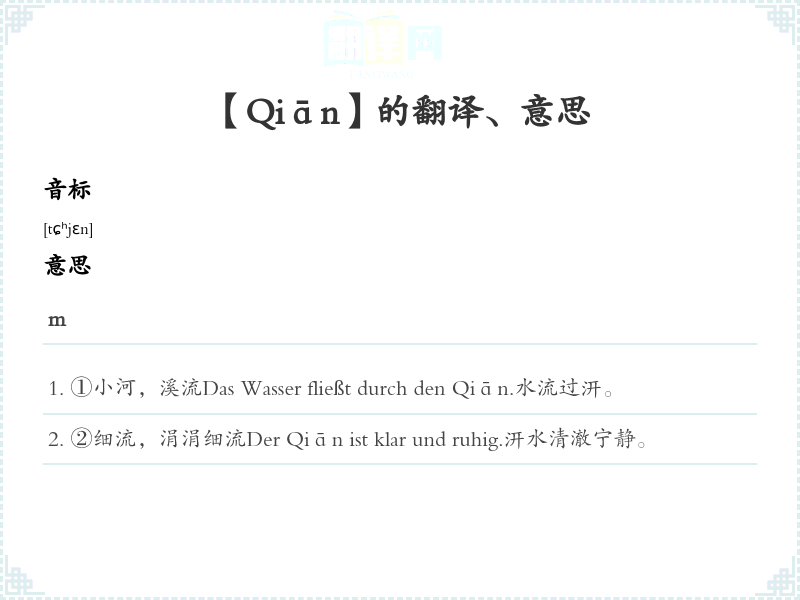②细流,涓涓细流Der Qiān ist klar und ruhig.汧水清澈宁静。