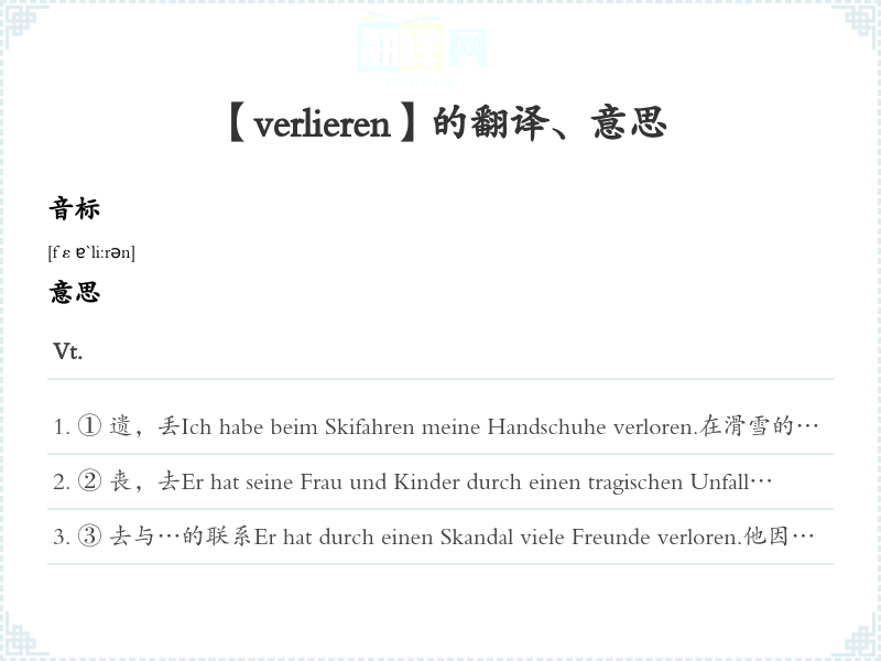 【verlieren】是什么意思、字义解释