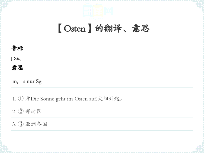 ① 方Die Sonne geht im Osten auf.太阳升起。