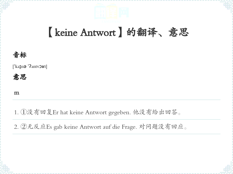 【keine Antwort】是什么意思、字义解释