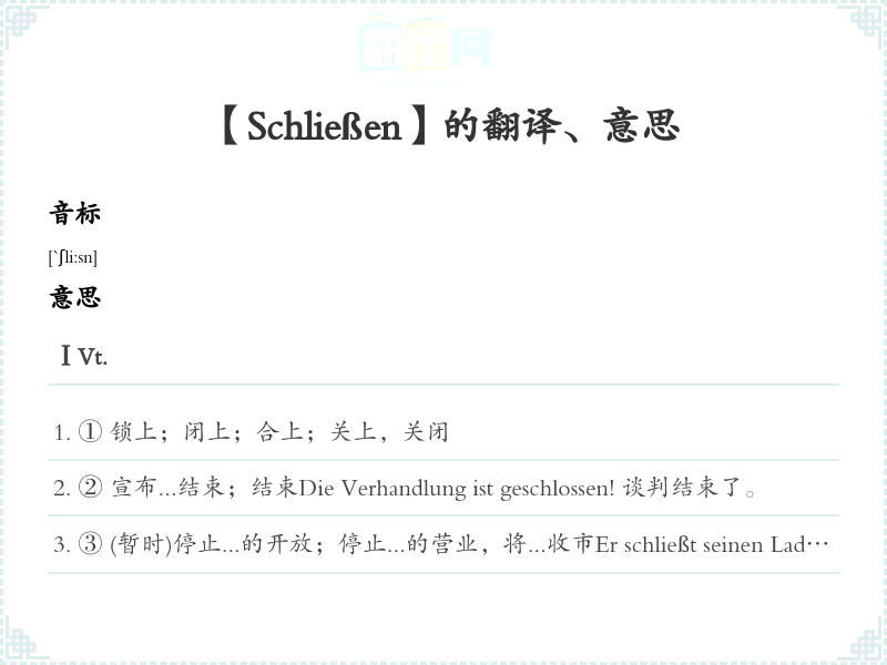 ① 关上,合上Die Tür schließt sich langsam. 门慢慢关上了。
