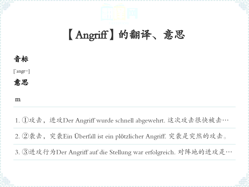 【Angriff】是什么意思、字义解释