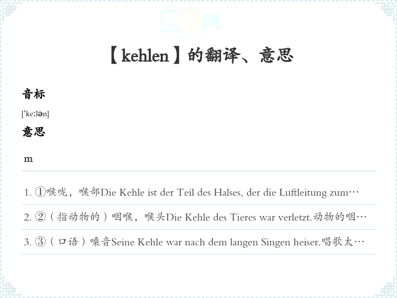 【kehlen】是什么意思、字义解释