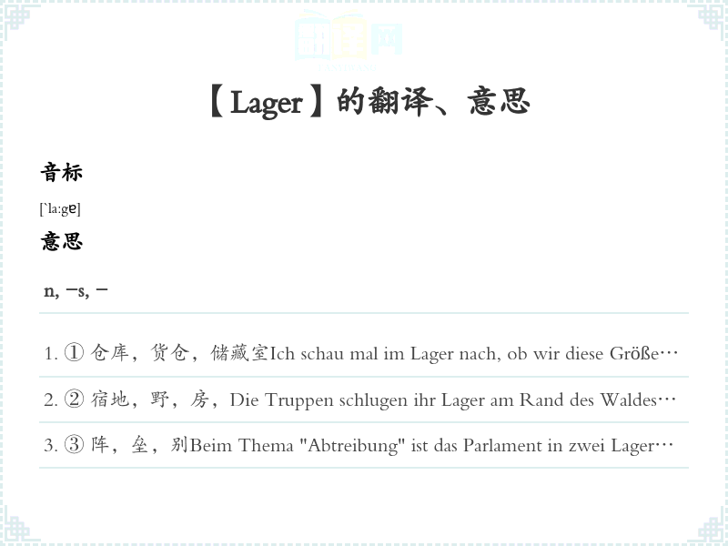 【Lager】是什么意思、字义解释