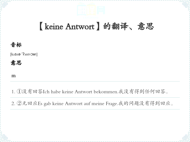 【keine Antwort】是什么意思、字义解释