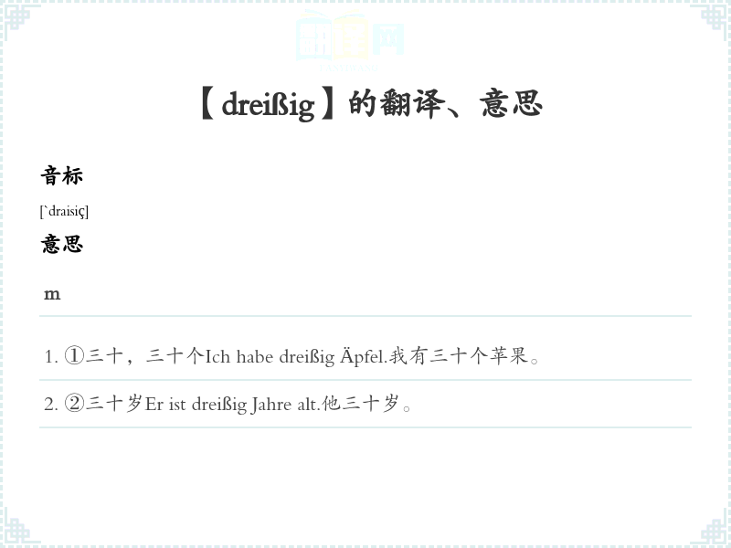 ②三十岁Er ist dreißig Jahre alt.他三十岁。