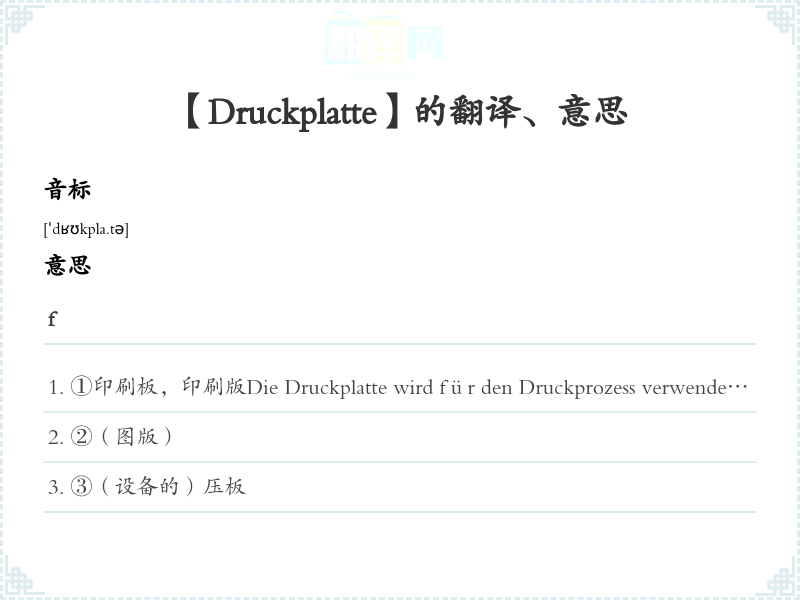 ①印刷板,印刷版Die Druckplatte wird für den Druckprozess verwendet.印刷板用于印刷过程。