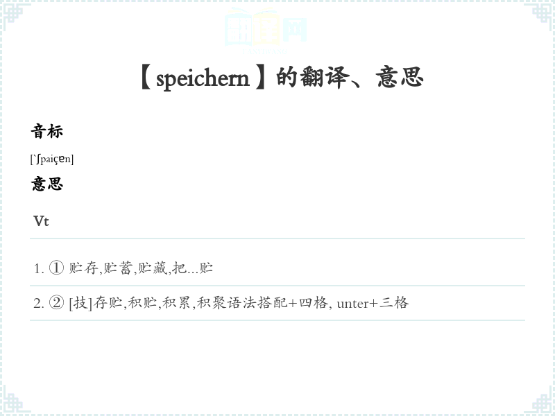 【speichern】是什么意思、字义解释