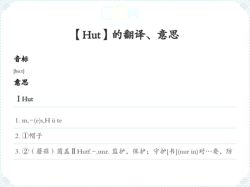 【Hut】是什么意思、字义解释