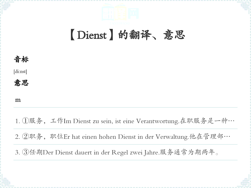 【Dienst】是什么意思、字义解释