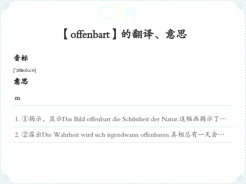 ①揭示,显示Das Bild offenbart die Schönheit der Natur.这幅画揭示了自然的美。