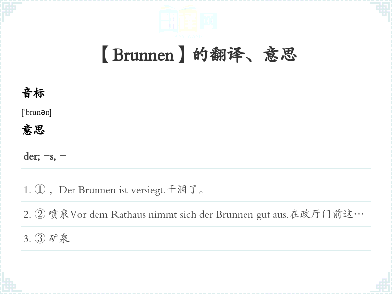 ② 喷泉Vor dem Rathaus nimmt sich der Brunnen gut aus.在政厅门前这口显得很好看。