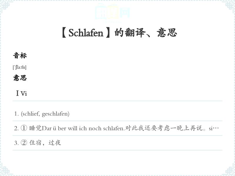 【Schlafen】是什么意思、字义解释