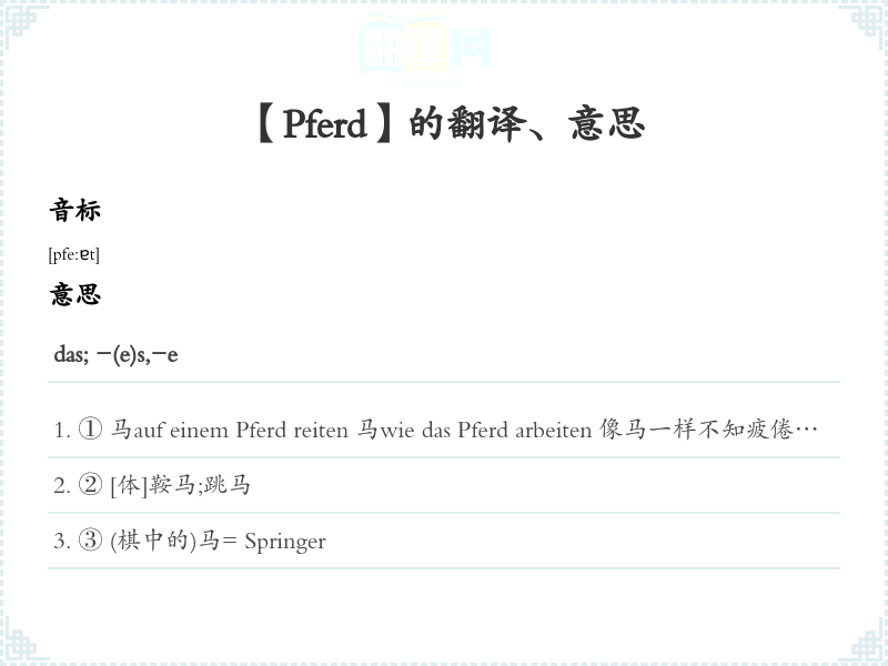 ① 马auf einem Pferd reiten 马wie das Pferd arbeiten 像马一样不知疲倦地干活