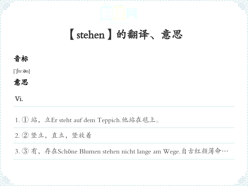 【stehen】是什么意思、字义解释