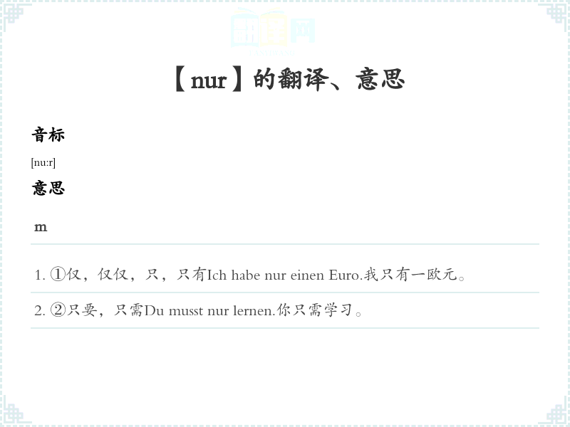 ①仅,仅仅,只,只有Ich habe nur einen Euro.我只有一欧元。