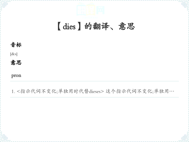 <指示代词不变化;单独用时代替dieses> 这个指示代词不变化;单独用时代替dieses>Dies ist meine Schulkamerad. 这是我的中学同学。