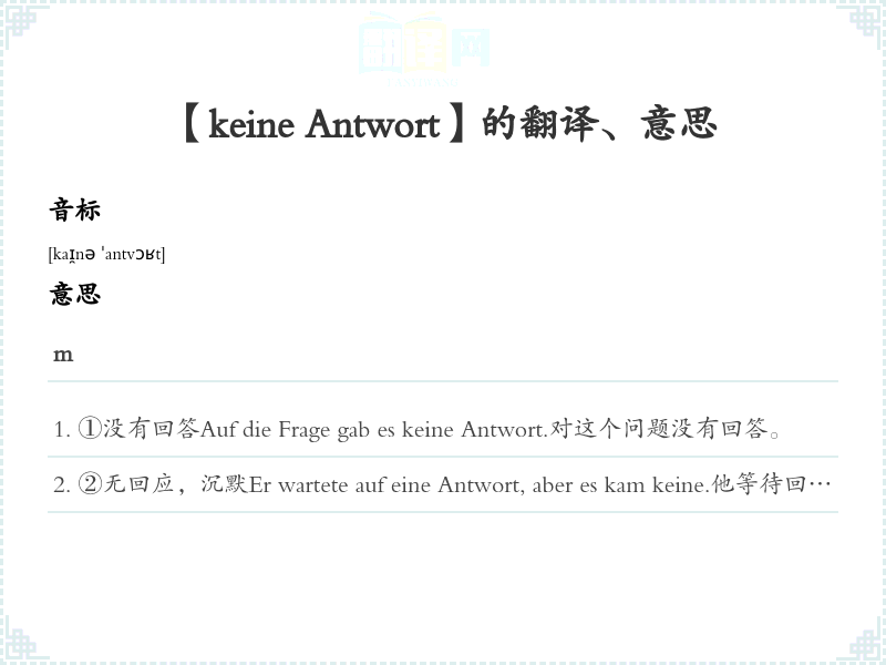 【keine Antwort】是什么意思、字义解释