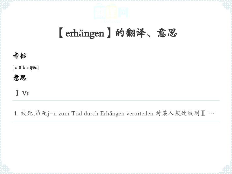 绞死,吊死j-n zum Tod durch Erhängen verurteilen 对某人叛处绞刑Ⅱ Vr上吊,自缢语法搭配sich+四格, +四格