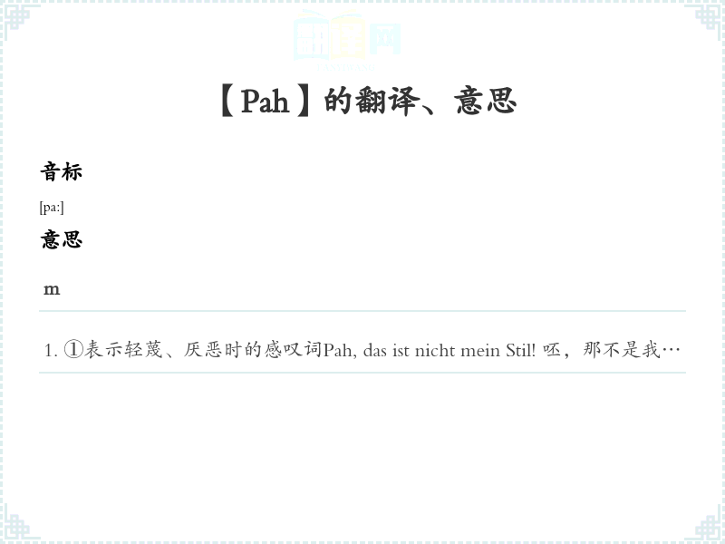 ①表示轻蔑、厌恶时的感叹词Pah, das ist nicht mein Stil! 呸,那不是我的风格!