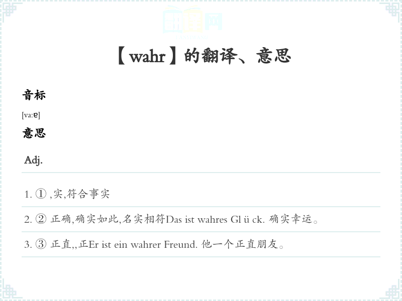 ③ 正直,,正Er ist ein wahrer Freund. 他一个正直朋友。