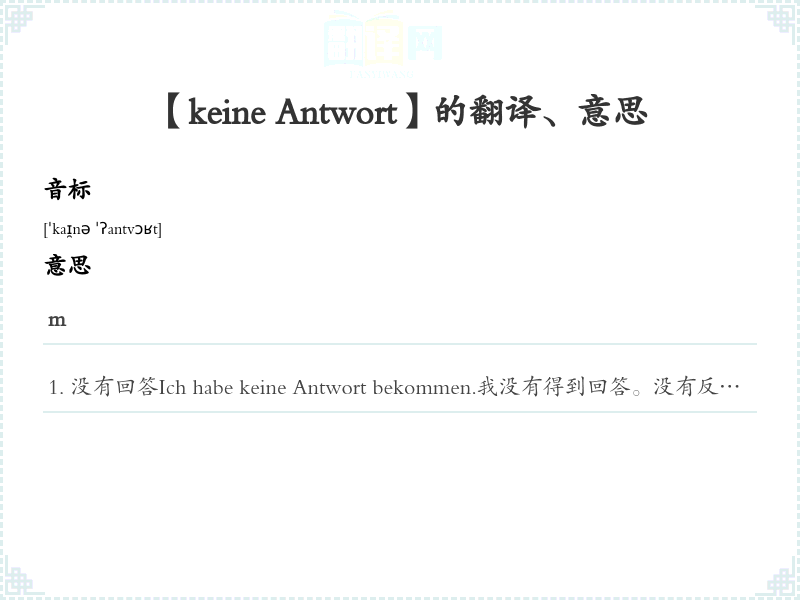 【keine Antwort】是什么意思、字义解释