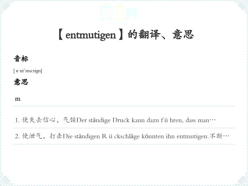 【entmutigen】是什么意思、字义解释