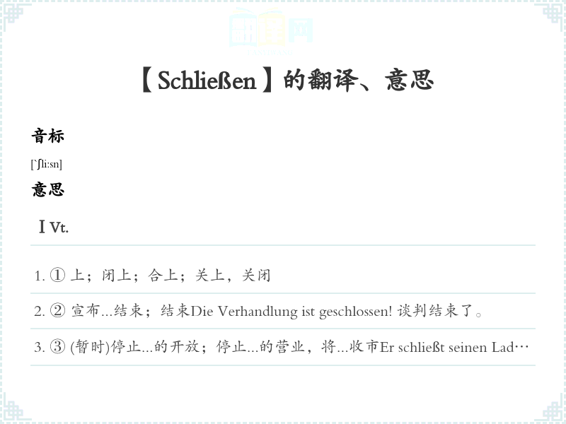 【Schließen】是什么意思、字义解释
