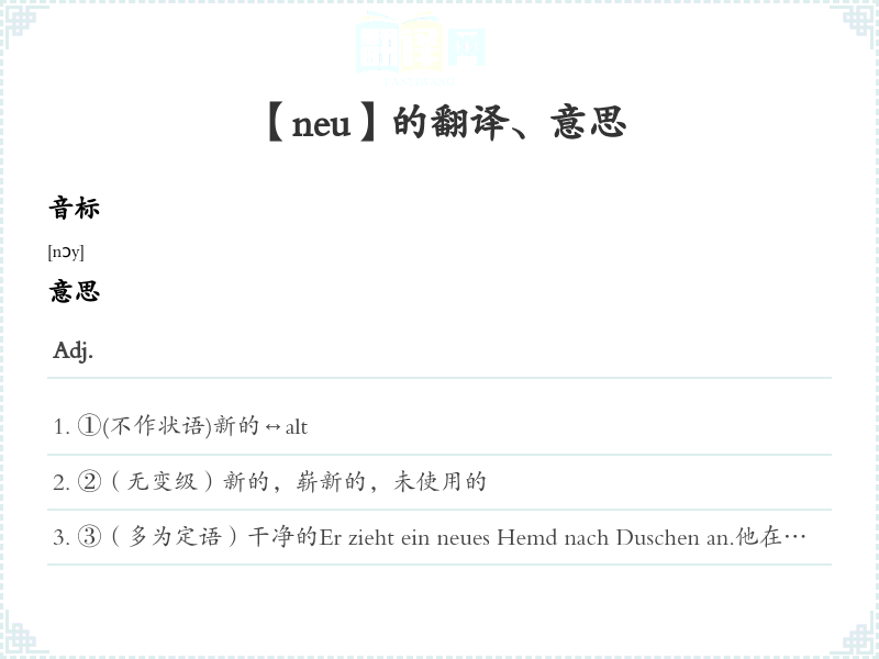 【neu】 近义词:、 反义词: 联想词