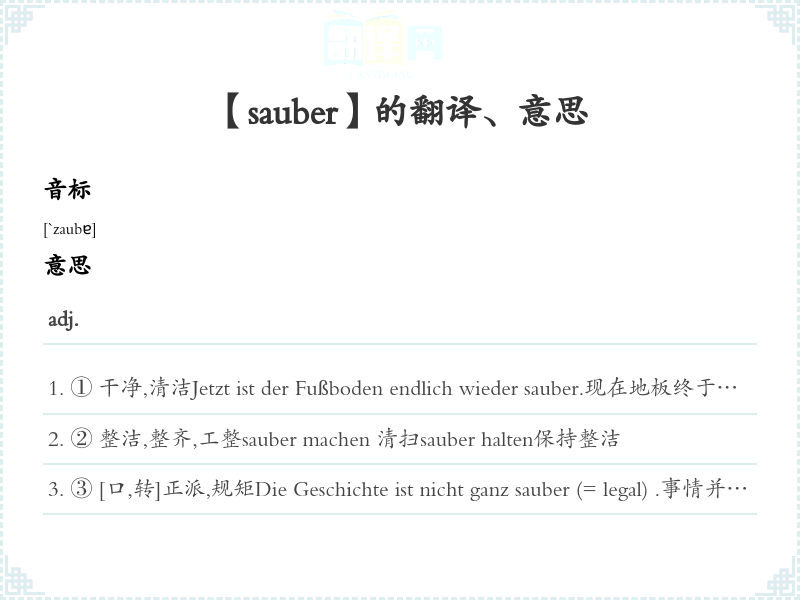 ② 整洁,整齐,工整sauber machen 清扫sauber halten保持整洁