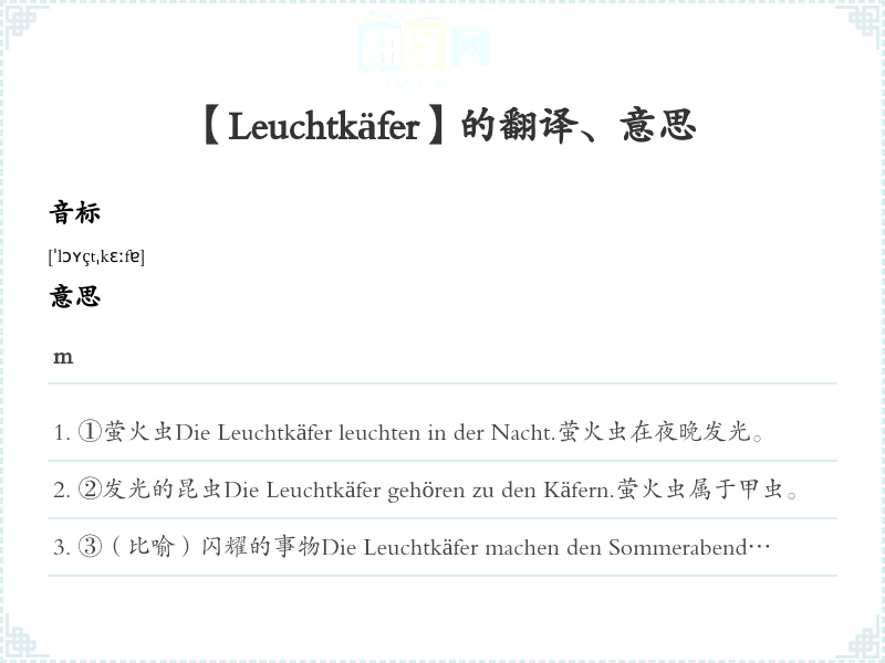【Leuchtkäfer】是什么意思、字义解释