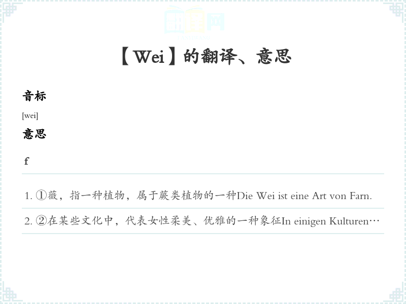 ①薇,指一种植物,属于蕨类植物的一种Die Wei ist eine Art von Farn.