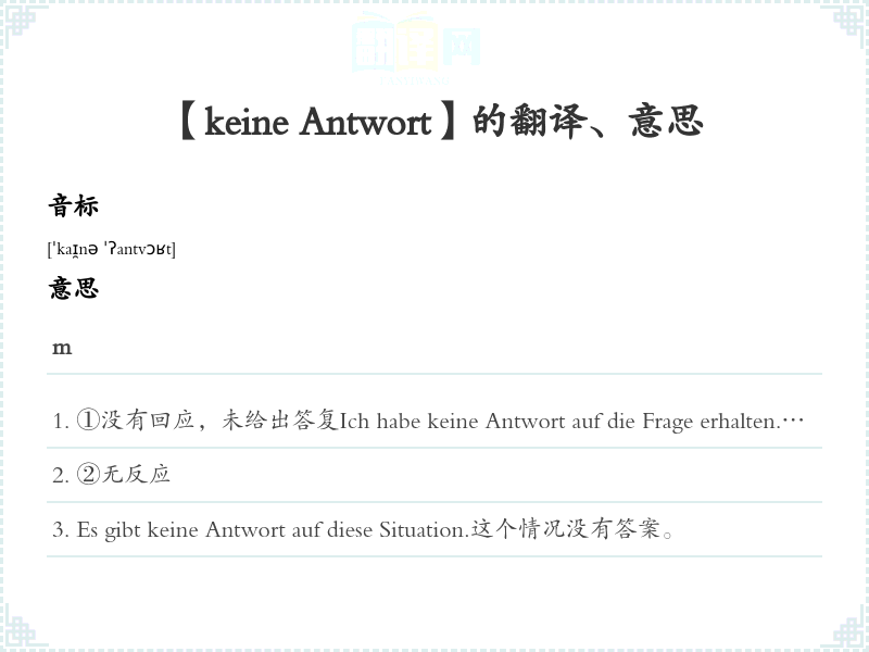 【keine Antwort】是什么意思、字义解释