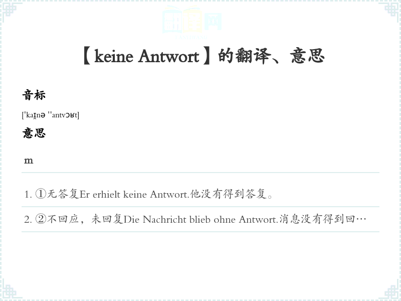 【keine Antwort】是什么意思、字义解释