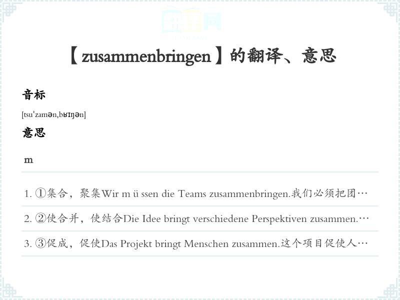【zusammenbringen】是什么意思、字义解释