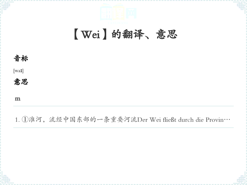 ①淮河,流经中国东部的一条重要河流Der Wei fließt durch die Provinz Jiangsu.淮河流经江苏省。