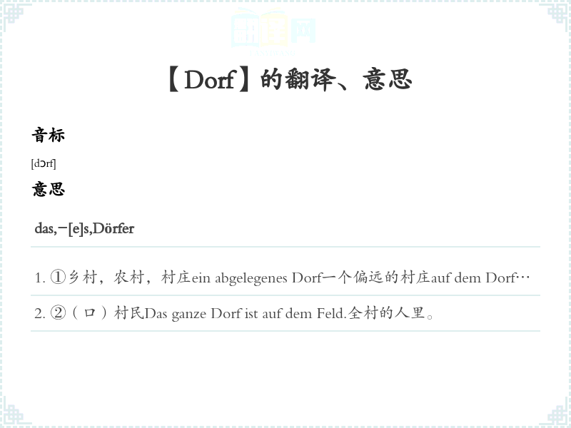 【Dorf】是什么意思、字义解释